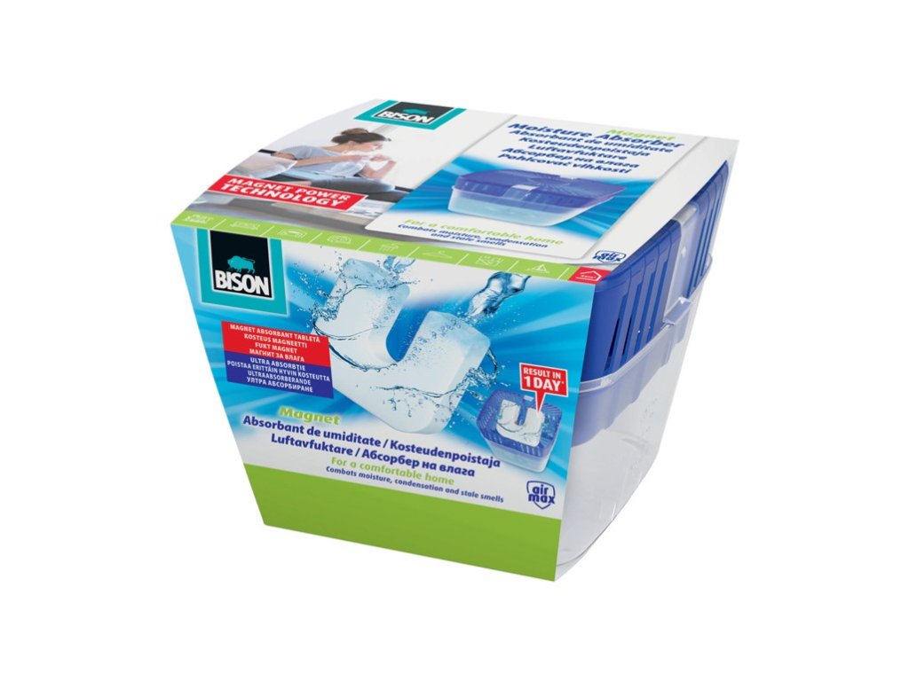 Der Luftentfeuchter bekämpft Feuchtigkeit, Kondenswasser und muffigen Geruch mit der Kraft eines Magneten. Für ein behagliches Zuhause. ANWENDUNGSBEREICH: Bekämpft Kondenswasser, Feuchtigkeit und muffige Gerüche. Der Luftentfeuchter ist geruchlos, geräuschlos, energiesparend und einfach nachzufüllen. Er reduziert die Luftfeuchtigkeit in allen geschlossenen Räumen mit geringer oder keiner Belüftung. Ideal für Keller, Garagen, Dachböden, Garderoben, Wohnwagen, Schuppen usw. Geeignet für alle Füllmaterialien: Beutel, Magnete. GEBRAUCHSANWEISUNG: Öffnen Sie den Luftentfeuchter und reißen Sie die Plastikverpackung mit der Tablette auf. Nehmen Sie die Tablette heraus und platzieren Sie sie auf den Kunststoffnoppen des Absorbers. Deckel aufsetzen – fertig! Die gebundene Feuchtigkeit fließt allmählich in den Behälter am Boden des Absorbers. Dank der praktischen Düse kann diese Feuchtigkeit einfach in die Kanalisation entsorgt werden (umweltfreundlich). Mit einer neuen Füllung ist der Luftentfeuchter sofort wieder einsatzbereit.Zusätzliche Parameter