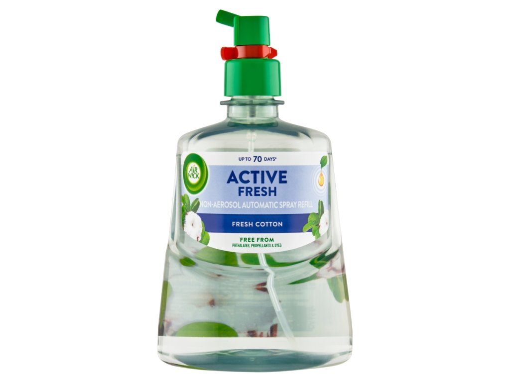 Air Wick Active Fresh Fresh Cotton besteht zu 95 % aus natürlichen Inhaltsstoffen . Zusätzlich enthält die Komposition ätherische Öle , die einen langanhaltenden Duft garantieren. Die Komposition ist völlig frei von zugesetzten Phthalaten, Treibmitteln oder Farbstoffen.