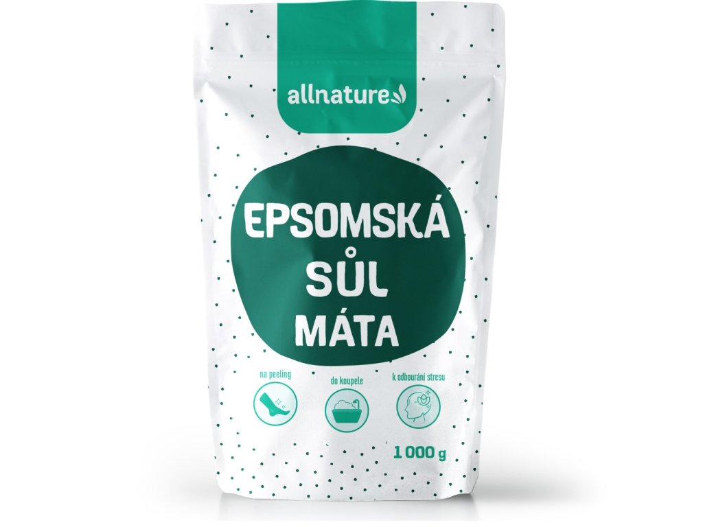Epsom-Badesalz mit Pfefferminze. Ein Bad mit Epsom-Salz ist ideal zur Entspannung und Muskelentspannung. Minze zeichnet sich durch ihre positive Wirkung auf die Atemwege aus und trägt außerdem zu einem besseren Schlaf bei. Das Salz eignet sich auch für Ganzkörperpeelings.