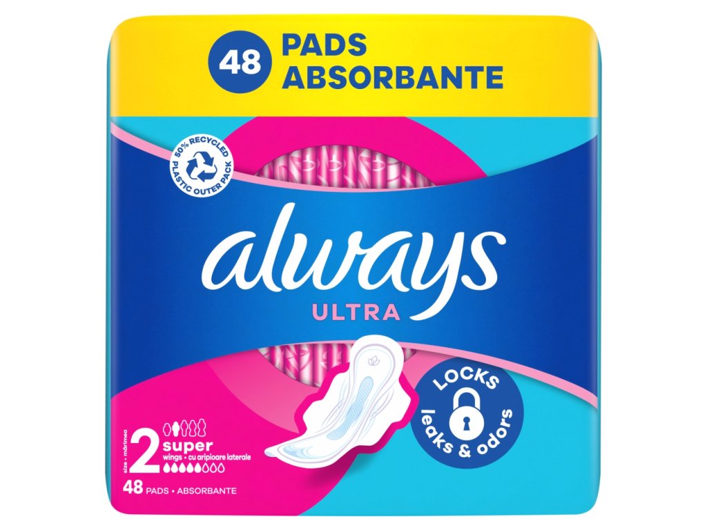 always Ultra Winged Pads, Größe 2. Super saugfähig in Sekundenschnelle dank InstantDry-Technologie. Die Pads verhindern dank LeakGuard- und OdorLock-Technologie Auslaufen und Gerüche.