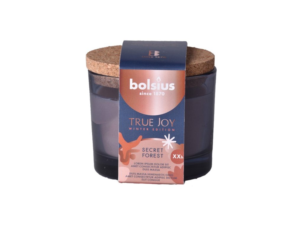 Bolsius Duftkerze im Glas mit Korkdeckel, 80 x 75 mm, Duftrichtung: True Joy Secret Forest