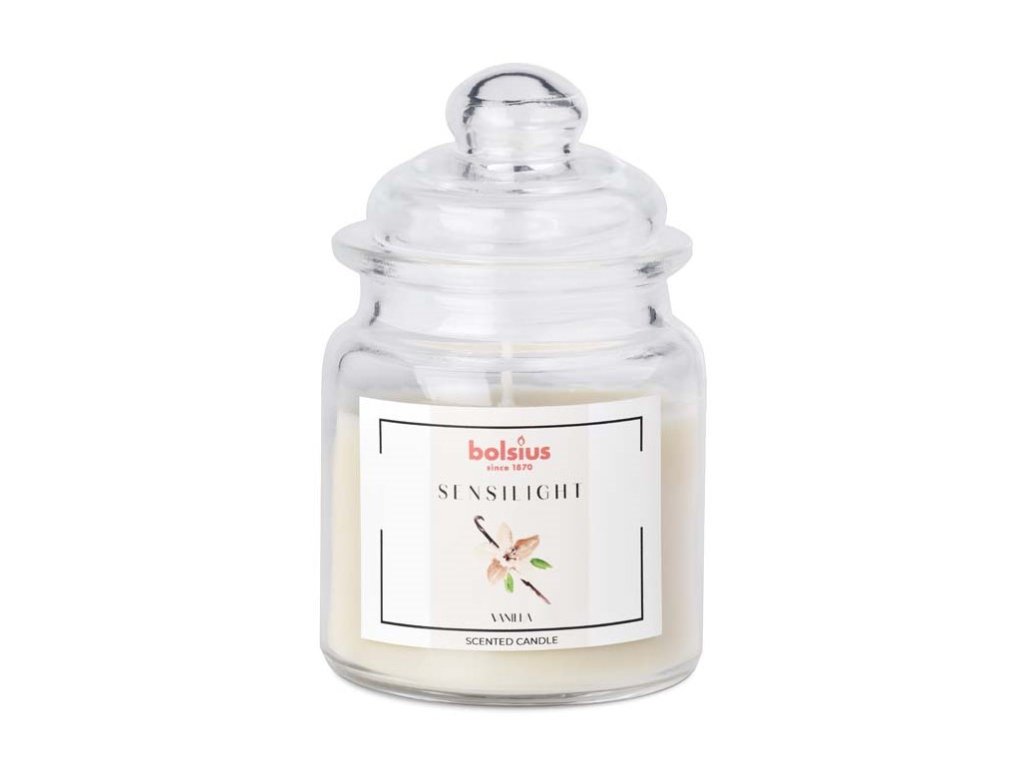 Bolsius Sensilight Duftkerze im Glas mit Deckel, 79 x 126 mm, Duftmischung: Vanille, Lavendel, Mango