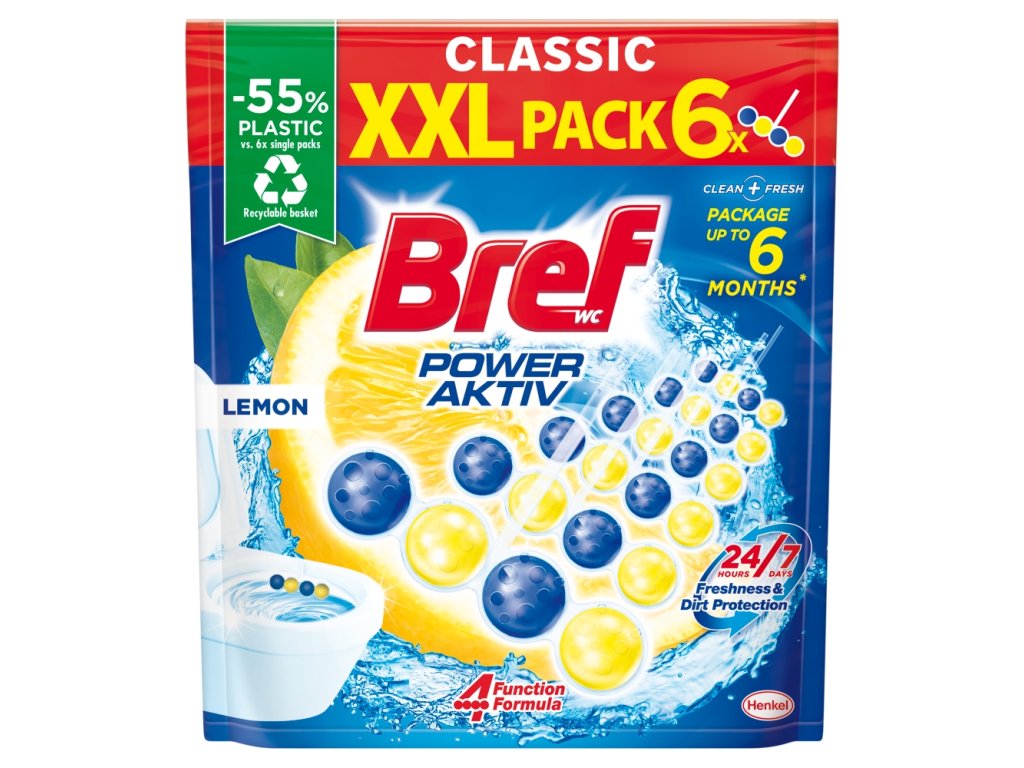 Dank seiner einzigartigen Bref-Formel mit 4 Funktionen verhindert Bref Power aktiv Kalkablagerungen, erzeugt einen effektiven Reinigungsschaum, verhindert Schmutzablagerungen und verleiht Ihrer Toilette zusätzliche Frische. Platzieren Sie das Produkt einfach unter dem Rand der Toilettenschüssel, stellen Sie es auf den Wasserstrahl und spüren Sie bei jeder Spülung die Frische und Sauberkeit Ihrer Toilette! Es hält bis zu 250 Spülungen.