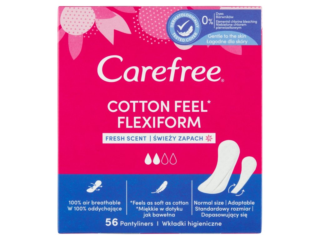 Maximaler Komfort und 100 % zuverlässiger Schutz während Ihres Menstruationszyklus. Carefree Cotton Flexiform Damenbinden geben Ihnen den ganzen Tag über ein Gefühl von Komfort und Sicherheit.