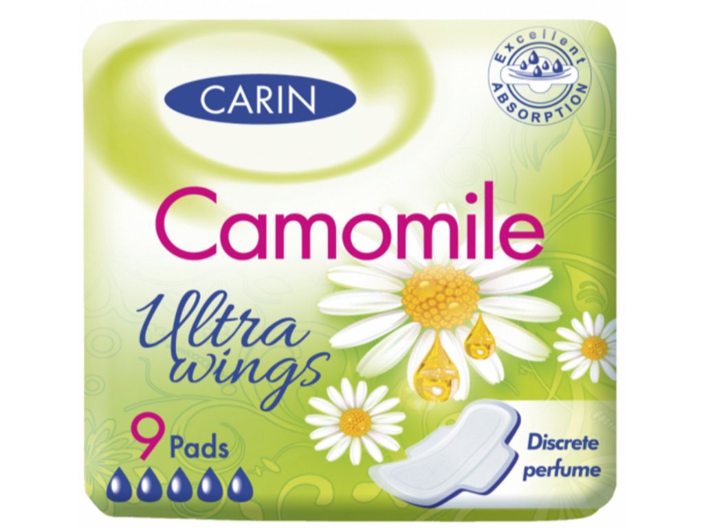 Carin Ultra Wings sind ultradünne, parfümierte Pads mit Flügeln, deren frischer Kamillenduft ein perfektes Sauberkeitsgefühl vermittelt. Sie verfügen über eine sensitive Gitteroberfläche (Sensitive TRIC TRAC Surface).