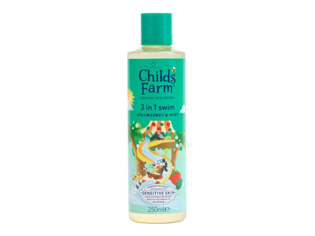 CHILDS FARM 3in1 Duschgel, Shampoo und Spülung nach dem Schwimmen Erdbeere und Minze, 250 ml