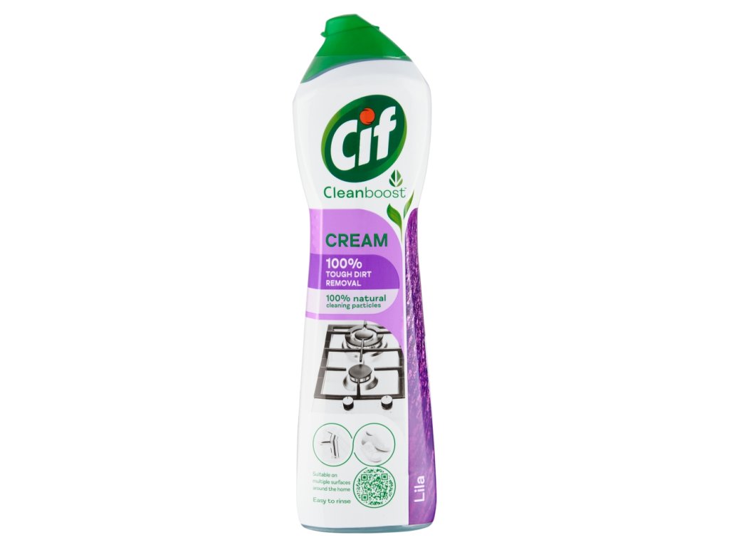 Cif Cream Lila ist ein cremiger Scheuerreiniger mit dem Duft von Veilchen und Iris. Er löst mühelos Schmutz und reinigt selbst scheinbar unreinigbare Oberflächen im ganzen Haus, einschließlich moderner Oberflächen.