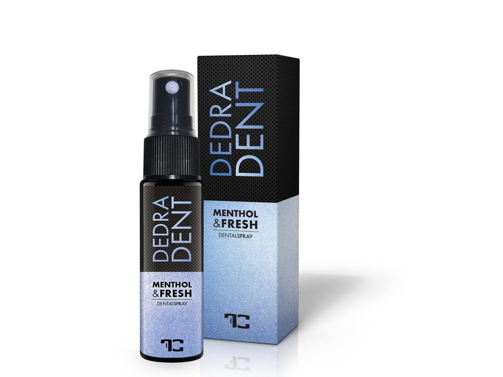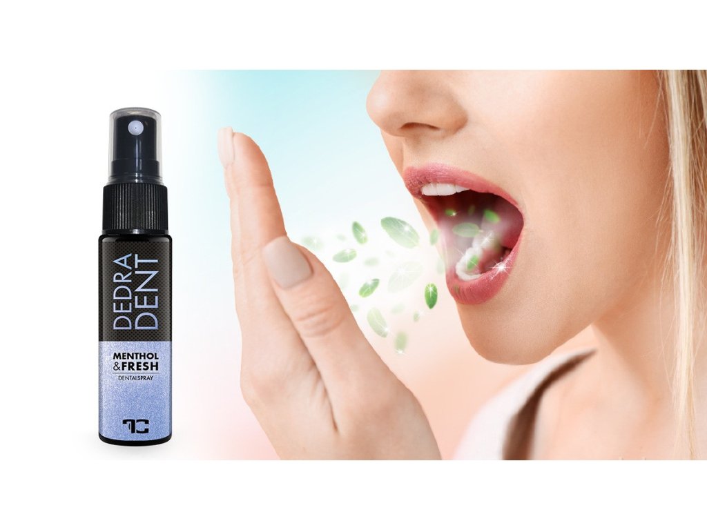 DEDRA DENT® MENTHOL & FRESH ist ein natürliches Kräuter-Mundspray im praktischen Taschenformat für unterwegs. Es sorgt dank der Kombination aus Menthol, Minze, Thymian und Nelke für sofortige und langanhaltende Atemfrische. Ideal für jede Tageszeit – nach dem Essen, Meetings oder Sport. Hauptvorteile: Menthol & Pfefferminze – schnelle Erfrischung und ein kühlendes Gefühl im Mund. Nelken- und Thymianöl – natürliche antibakterielle und antiseptische Wirkung, bekämpft Mundgeruch. Anisöl – feiner, aromatischer Geschmack und zusätzliche Frische. Gesüßt mit Xylit und Stevia – zuckerfrei und zahnschonend. Frei von Parabenen, Triclosan, Saccharin, synthetischen Farbstoffen und chemischen Konservierungsmitteln. Anwendung: Je nach Bedarf 1–2 Sprühstöße direkt in den Mund geben. Ideal für unterwegs, im Büro und in der Freizeit. Perfekte, langanhaltende Frische! DEDRA DENT® Natürliches Mundspray MENTHOL & FRISCH enthält bewährte natürliche Inhaltsstoffe (ätherische Öle, Kräuteröle und -extrakte): Menthol, Pfefferminzextrakt, Nelkenöl, Thymianöl und Anisöl. Es beseitigt unangenehmen Mundgeruch und sorgt für frischen Atem. Gesüßt mit Birkenzucker (Xylit) und Stevia = ZUCKERFREI. Hinterlässt einen angenehmen Geschmack im Mund. Für ein angenehmes Gefühl zu jeder Tageszeit anwenden. Wussten Sie, dass Nelkenöl zusammen mit Pfefferminzextrakt nicht nur den Atem erfrischt, sondern auch stark antibakteriell und antiseptisch wirkt und aktiv gegen übermäßiges Bakterienwachstum vorgeht? Frei von Parabenen, Triclosan, Zucker, Saccharin, synthetischen Farbstoffen und chemischen Konservierungsstoffen.Zusätzliche Parameter