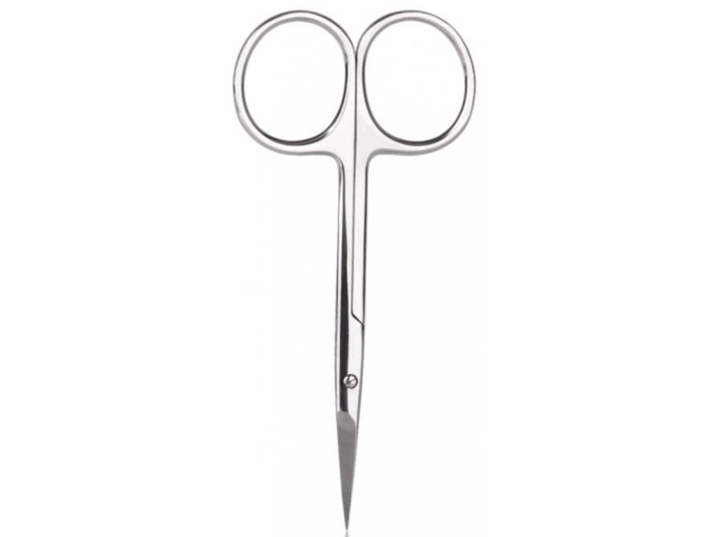 Gerade, dünne Maniküreschere aus Edelstahl. Maße: 10,5 x 4,5 cm.