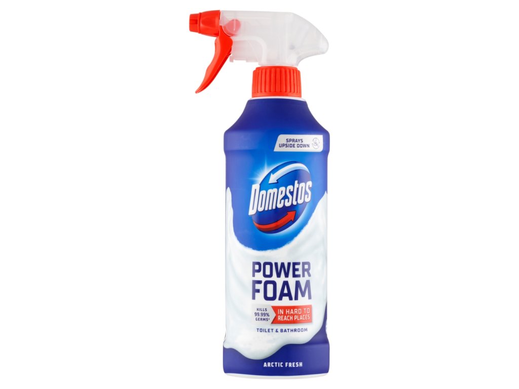 Domestos Power Foam Arctic Schaumreiniger für Toiletten und Badezimmer 435 ml Domestos Power Foam Sprühschaum bringt bequemere und effektivere Toilettenreinigung in einer völlig neuen revolutionären Form. Der speziell entwickelte Sprüher befreit Ihre Toilette von Viren und Bakterien, selbst an schwer zugänglichen Stellen.