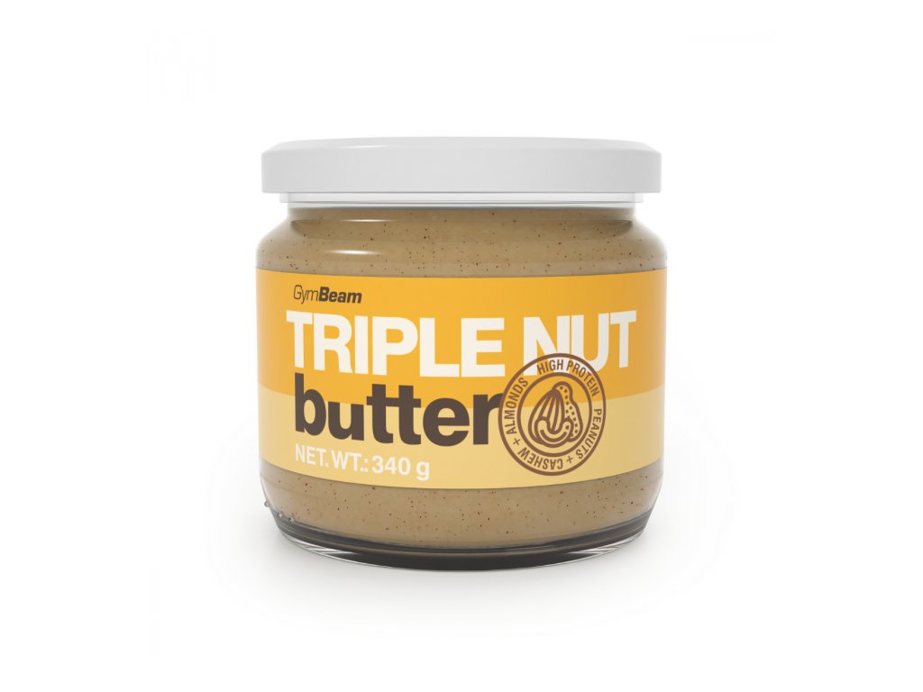 Dreifach-Nussbutter – eine köstliche Butter, die alle Vorzüge von Cashewnüssen, Erdnüssen und Mandeln in einer perfekten Geschmacksharmonie vereint.