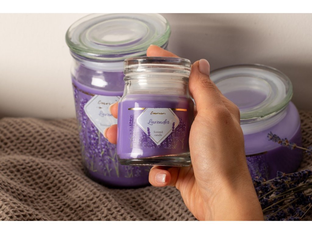 Emocio Duftkerze im Glas, Lavendel, mit Glasdeckel, 57 x 85 mm