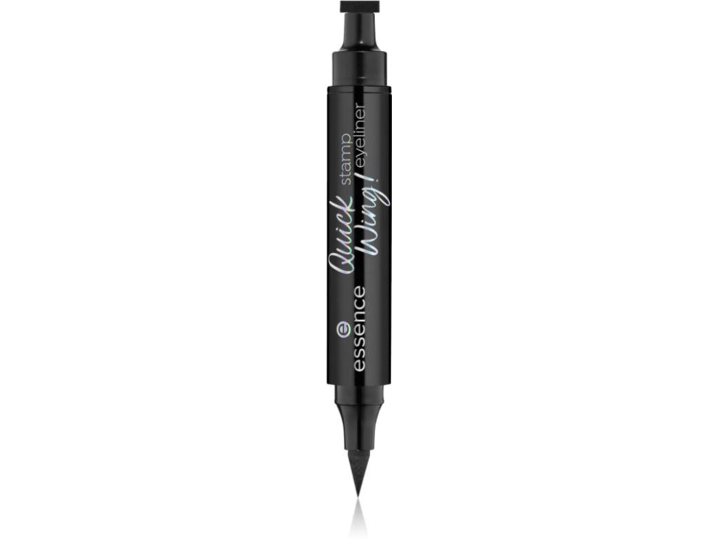 Mit dem essence eyeliner and stamp Quick Wing! 01 black gelingt dir ein langanhaltender, symmetrischer Lidstrich mit einem Ende. Das macht den Eyeliner ideal für Anfänger und Make-up-Experten. Mit der Stempelseite ziehst du mühelos einen makellosen Lidstrich, während die präzise Filzspitze auf der anderen Seite das Verbinden des Endes mit der gezeichneten Linie entlang des gesamten Augenlids erleichtert. Wenn du nicht weißt, wie man einen perfekten Eyeliner zieht, probier die Marke essence aus.