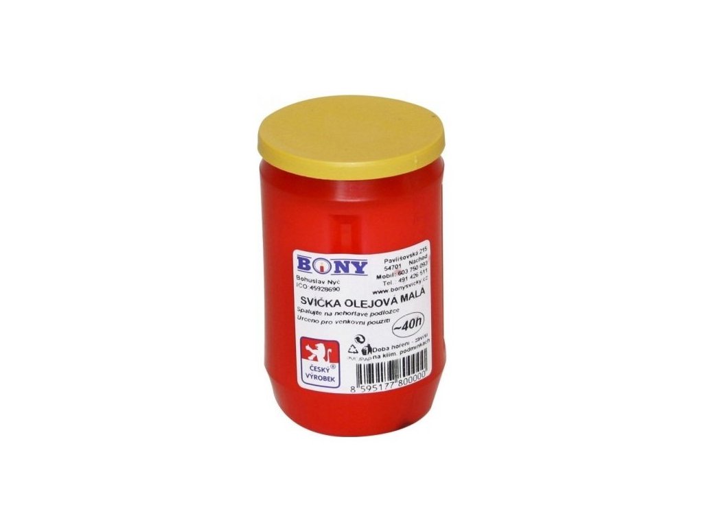 Kerze mit Ölzusatz. Sie zeichnet sich durch eine außergewöhnlich lange Brenndauer von bis zu 40 Stunden aus.