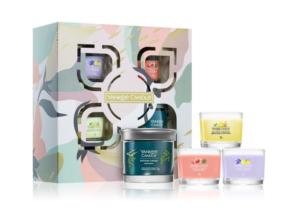 GESCHENKSET MIT SIGNATURE-BECHER UND 3 VOTIVKERZEN AUS GLAS