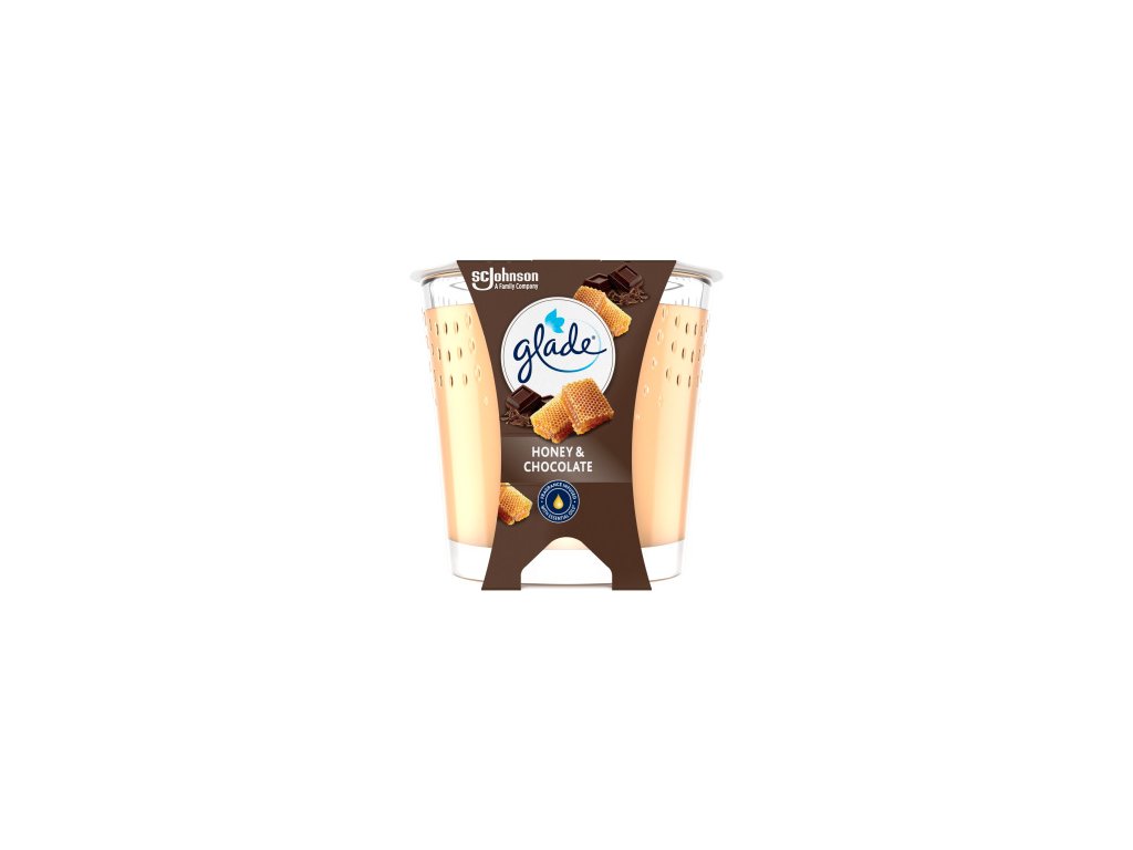 Duftkerze von Glade mit Honig- und Schokoladenduft. Enthält ätherische Öle, die in jedem Zuhause eine einzigartige Atmosphäre der Ruhe und Entspannung schaffen.