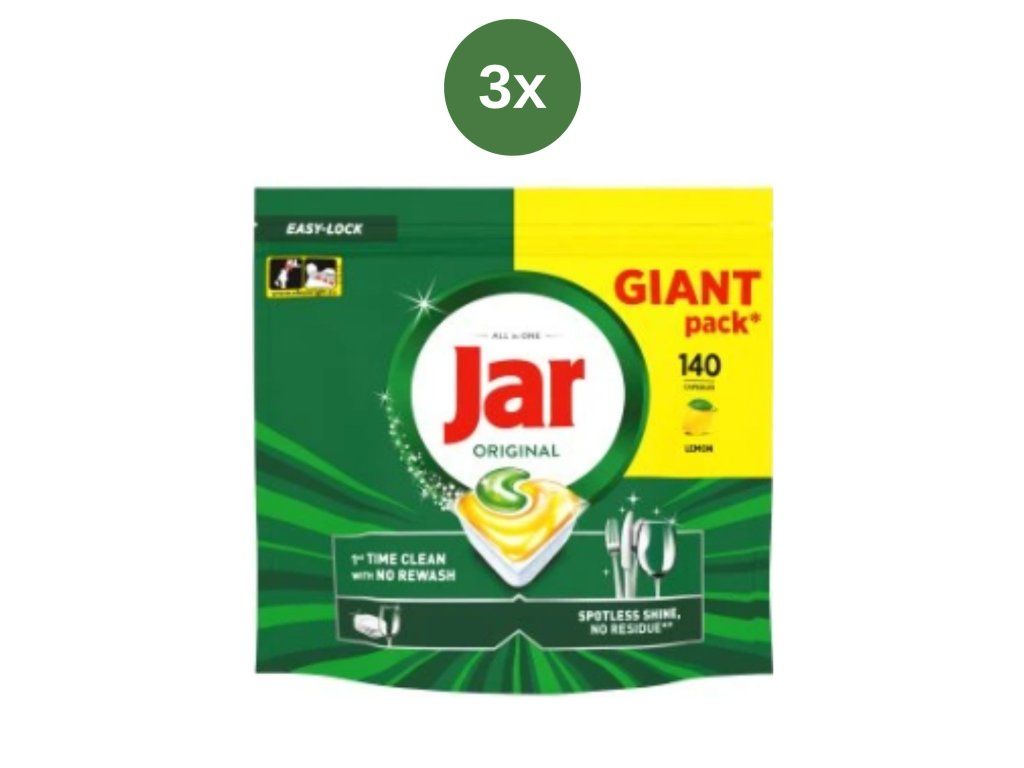 Die Jar All in One Original GIANT Geschirrspülkapseln sind eine praktische und effektive Lösung für den täglichen Abwasch. Dank einer Kombination aktiver Inhaltsstoffe entfernen sie Fett und angetrocknete Speisereste und sorgen für perfekt sauberes und glänzendes Geschirr.