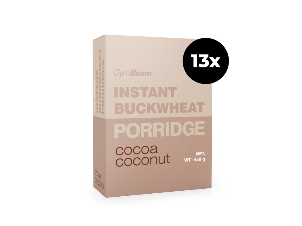 Instant-Buchweizenbrei - Kakao-Kokosnuss: Extrudierter Buchweizen 82 %, Kokosblütenzucker 8 %, entfettetes Kakaopulver (Fett max. 12 %) 6 %, geriebene Kokosnuss 4 %.