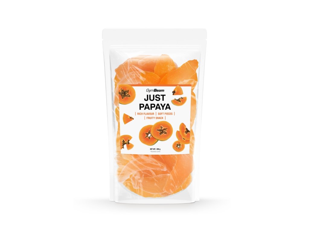 Just Papaya sind getrocknete Stücke exotischer Papaya, mit Puderzucker gesüßt, die Sie mit ihrem frischen Geschmack und Aroma begeistern werden. Sie stammen aus Vietnam, wo sie nach traditionellem Rezept sorgfältig getrocknet werden. Dank ihres hohen Ballaststoffgehalts sind sie die perfekte Wahl für alle, die zu jeder Tageszeit einen leckeren Snack genießen möchten. Sie schmecken pur und dank der wiederverschließbaren Verpackung sind sie ideal für unterwegs, Schule oder Büro.