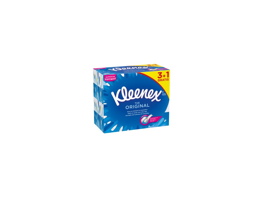 Kleenex Original 3-lagige Papiertaschentücher in einer Box, 4 x 72 Stück