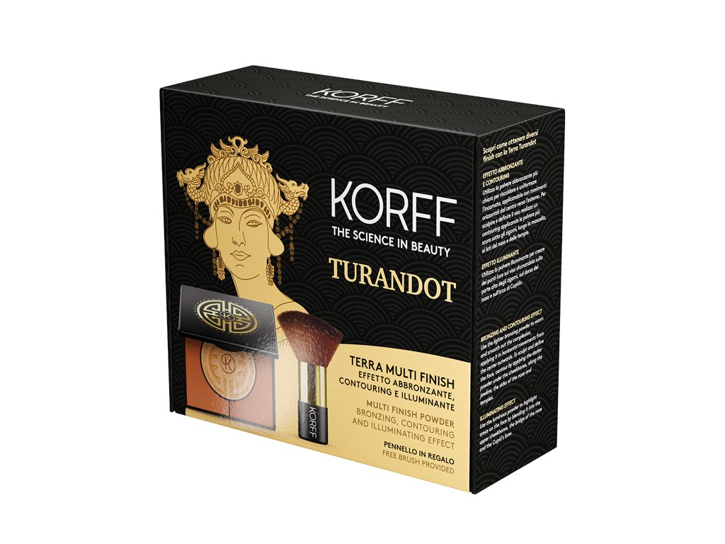 Aufhellender Effekt Das italienische Unternehmen Korff feiert Italien mit dieser limitierten Edition des Korff Cure Make Up Bronzer LE „Turandot“, einer Hommage an den berühmten Opernkomponisten Giacomo Puccini. Die Inspiration stammt von seiner Oper Turandot, die in China spielt und die Geschichte des Liebesdramas der schönen Prinzessin Turandot erzählt. Die Packung enthält zwei Bronzing-Puder und einen aufhellenden. BRONZING- UND KONTURIERUNGSEFFEKT Verwenden Sie den helleren Bronzing-Puder für einen warmen Ton und tragen Sie ihn in horizontalen Bewegungen von der Gesichtsmitte nach außen auf. Um das Gesicht zu konturieren, tragen Sie den dunkleren Puder unter den Wangenknochen, entlang der Kieferpartie, an den Seiten der Nase und an den Schläfen auf. AUFHELLENDER EFFEKT Verwenden Sie den aufhellenden Puder, um Bereiche des Gesichts hervorzuheben, indem Sie ihn auf die oberen Teile der Wangenknochen, auf den Nasenrücken und auf den oberen Rand der Lippe auftragen. Ein Kabuki-Pinsel ist im Lieferumfang enthalten.