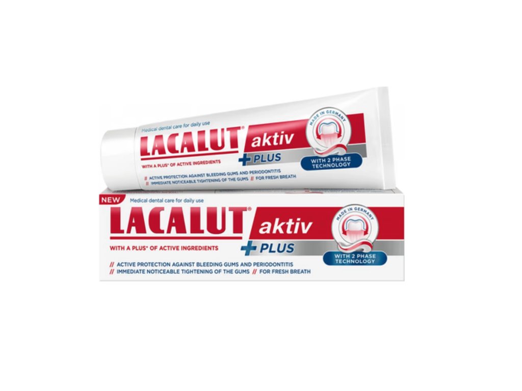 Lacalut® aktiv Plus wurde speziell zum Schutz vor Parodontitis und Zahnfleischbluten entwickelt. Es stärkt das Zahnfleisch und beugt Zahnfleischerkrankungen vor. Es bietet 12 Stunden Langzeitschutz und hemmt die Biofilmbildung. 2-Phasen-Technologie: