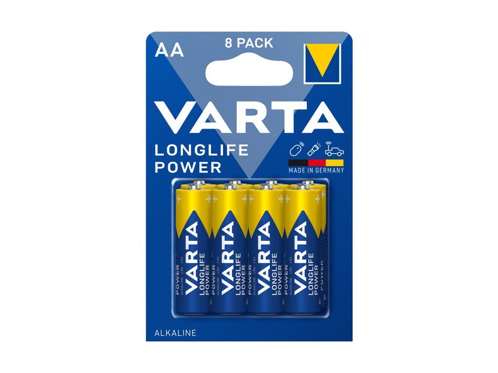 Varta – Longlife Power 2 AA – Leistungsstärkste Alkaline-Batterien für Geräte wie Spielzeug, Computerzubehör oder Taschenlampen. Spannung 1,5 V – 8 Stück.