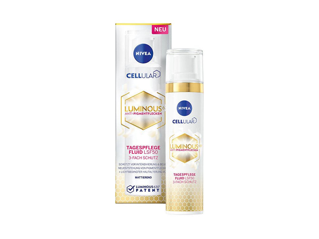 Mit Luminous630 verschwinden dunkle Augenringe. Die dreifache Wirkstoffkombination reduziert Flecken und beugt ihrer Neubildung vor. Vitamin E gibt der Haut ihre Elastizität zurück, Hyaluronsäure sorgt für Festigkeit, UV-Filter bieten Sonnenschutz und alle Inhaltsstoffe wirken gezielt gegen Altersflecken: die NIVEA Cellular Luminous630 Tagescreme gegen Altersflecken mit LSF 50.