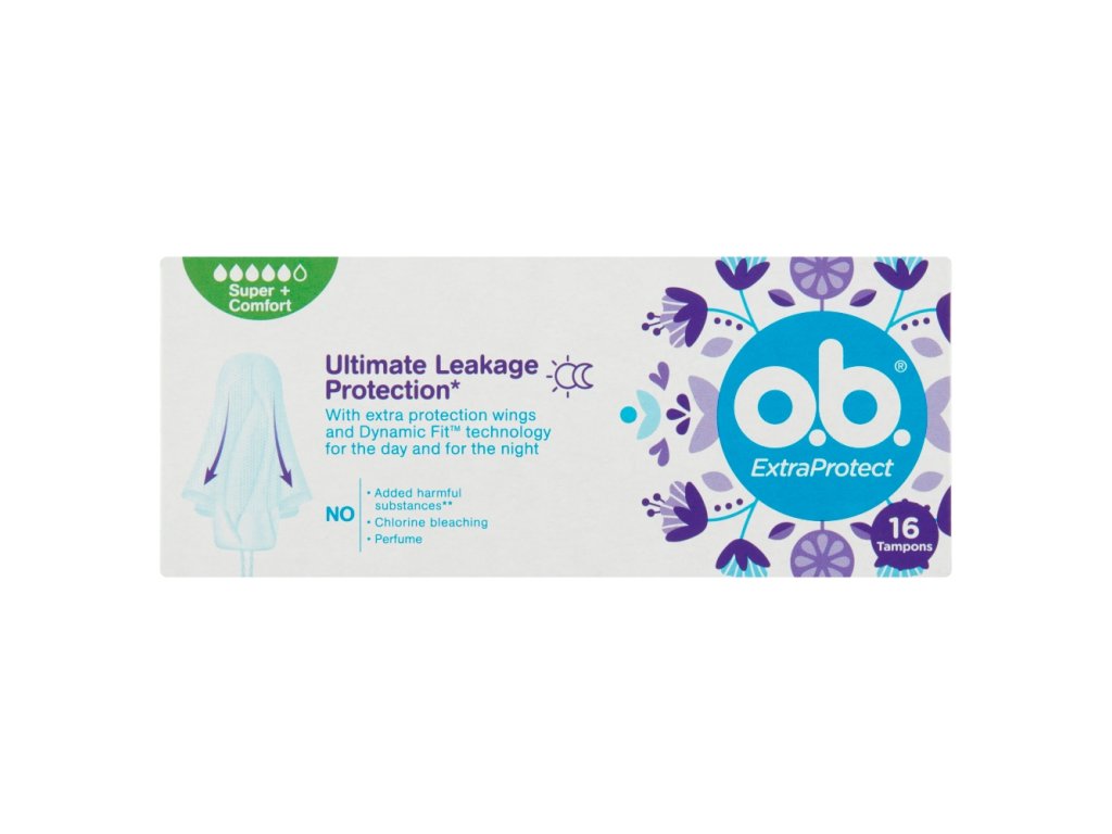 ob® Extra Protect Tampons kombinieren zwei Haupttechnologien für bis zu 100 % Auslaufschutz* bei Tag und Nacht.