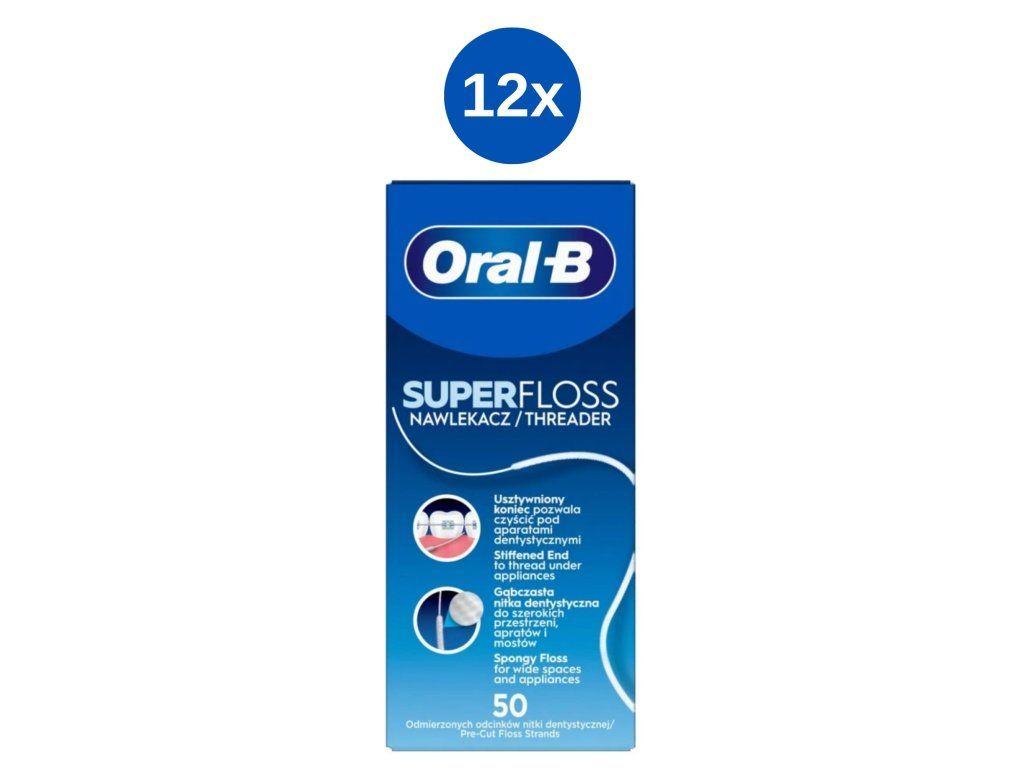 Oral-B Super Zahnseide ist eine spezielle Zahnseide, die für die gründliche Reinigung auch schwer zugänglicher Stellen in der Mundhöhle entwickelt wurde, insbesondere beim Tragen von Zahnspangen, Brücken oder Implantaten.