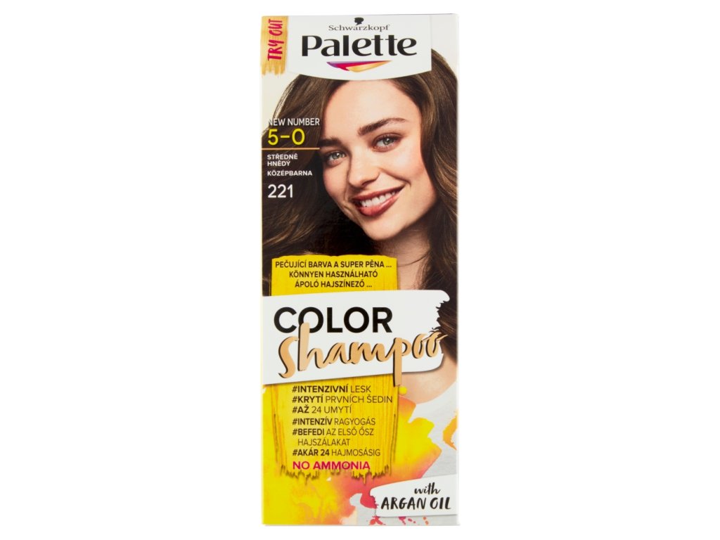 Palette Color Shampoo ist eine stufenweise auswaschbare Coloration mit Arganöl. Die spezielle, mit Arganöl angereicherte, ammoniakfreie Formel pflegt Ihr Haar während des Färbens vom Ansatz bis in die Spitzen. Die Farbe ist so schonend, dass sie Ihr Haar während des Färbens pflegt und ihm gleichzeitig strahlenden Glanz verleiht. Für ein natürlich wirkendes Farbergebnis, strahlendes Haar und bis zu 50 % mehr Glanz im Vergleich zu ungefärbtem Haar. Deckt erste graue Haare ab und hält bis zu 24 Haarwäschen. Die in der Formel enthaltenen speziellen Farbpigmente verleihen Ihrem Haar ein hervorragendes Farbergebnis. Das Ergebnis ist natürlich ausdrucksstarkes, gesund aussehendes Haar mit verbessertem Glanz.