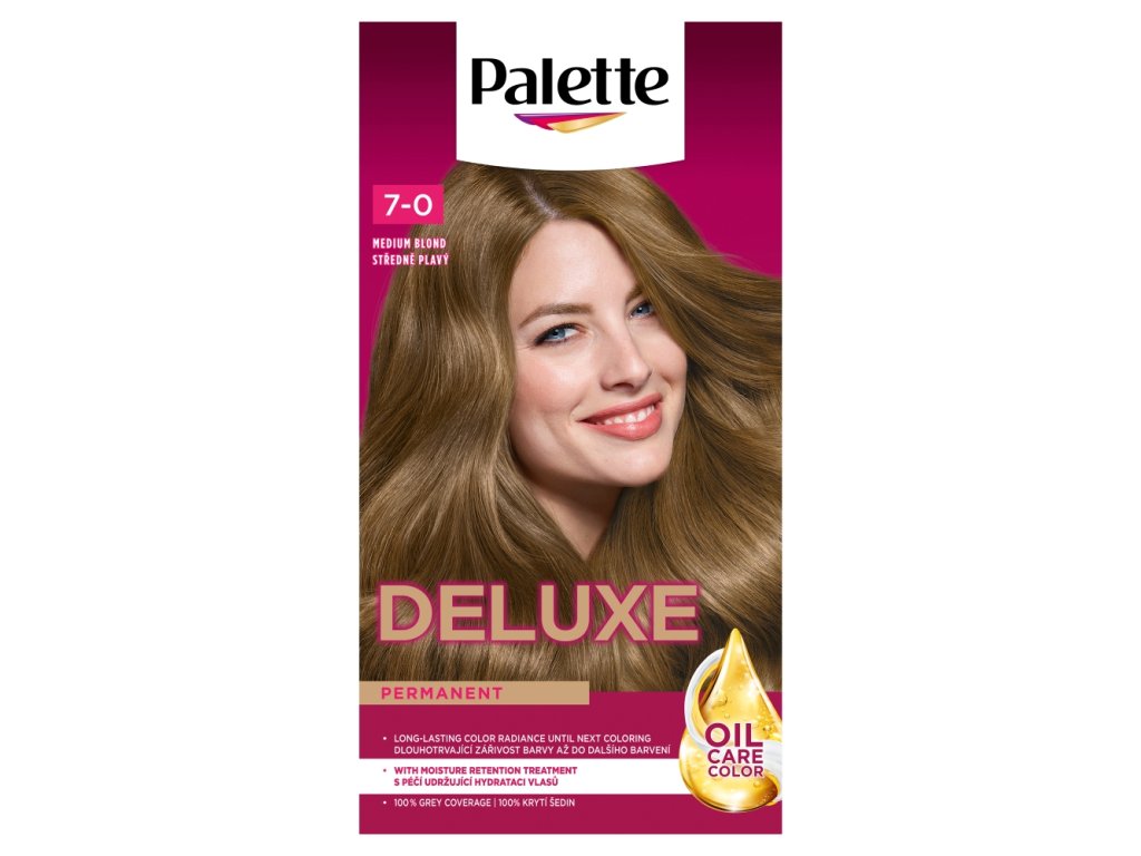 Genießen Sie die exklusive Palette Deluxe mit Ölen – die erste langanhaltende Farbe von Palette, angereichert mit pflegenden Ölen mit intensiven Farbpigmenten für erstaunlich lang anhaltende satte Farbe mit perfekter Grauabdeckung! Die intensive Colorationscreme mit pflegenden Ölen verleiht dem Haar eine satte Farbe für einen seltenen und luxuriösen Look mit bezauberndem Glanz. 7 Öle sind zusätzlich in der pflegenden Maske enthalten und spenden dem Haar auch nach dem Färben außergewöhnliche Pflege. Das Haar ist anschließend weich, geschmeidig und leicht kämmbar.