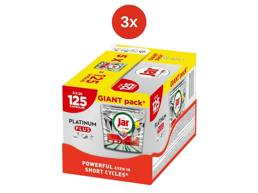Jar Platinum Plus Geschirrspülkapseln sind die Premium-Komplettlösung für mühelos sauberes, glänzendes Geschirr. Dank ihrer fortschrittlichen Technologie entfernen sie selbst hartnäckiges Fett und eingetrocknete Speisereste bereits beim ersten Spülgang.
