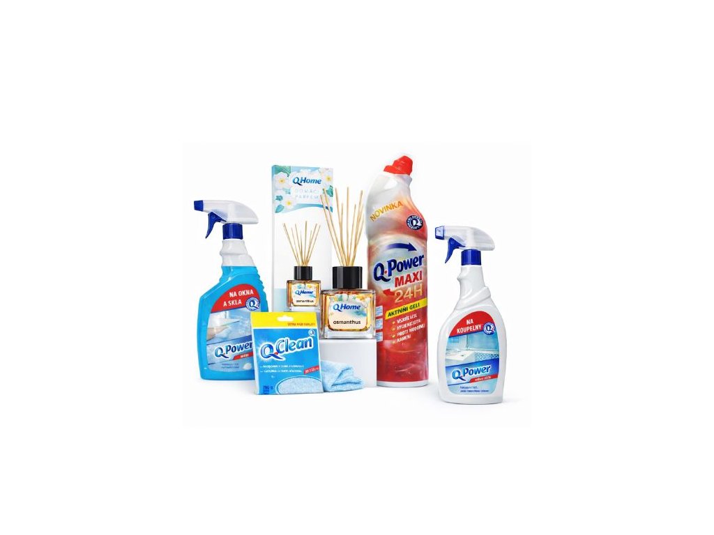 Die praktische Kombination aus Reinigungs- und Duftprodukten QPower und QClean bietet alles, was Sie für die tägliche Reinigung und ein frisches Raumklima in Ihrem Zuhause benötigen. Das Set enthält Produkte zur Reinigung von Glasflächen, Toiletten und Innenräumen und sorgt gleichzeitig für langanhaltenden Duft und hygienische Sauberkeit.