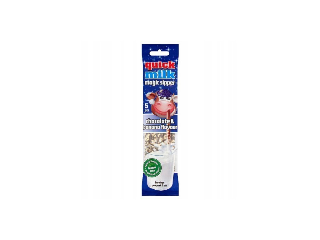 Verwandeln Sie Ihre Milch mit den magischen Quick Milk-Strohhalmen in ein köstliches Getränk mit Schokoladen- und Bananengeschmack! Stecken Sie den Strohhalm einfach in ein Glas kalte oder warme Milch (ca. 200–250 ml) und genießen Sie den fantastischen Geschmack beim Trinken. Jede Packung enthält 5 Strohhalme à 6 g, ideal für Kinder und Erwachsene.