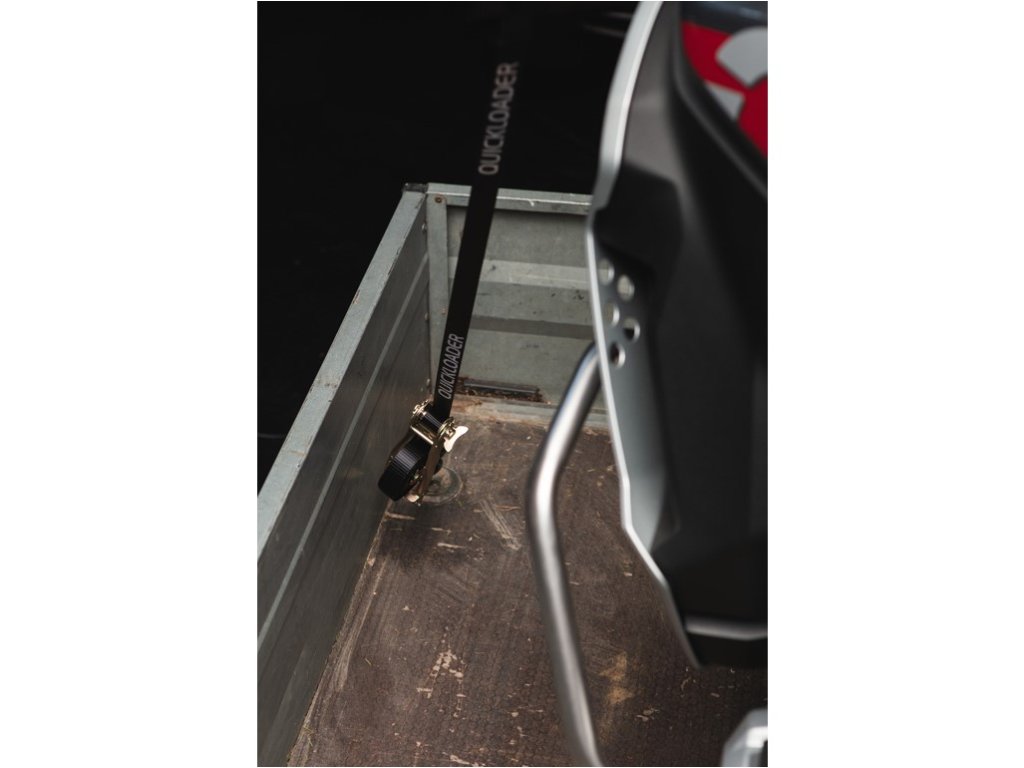 Das QUICKLOADER® Sicherungssystem mit einer Tragfähigkeit von 800 kg und einer Länge von 3,5 m (verstellbar von 0,7 bis 2,8 m) dient der sicheren Befestigung kleinerer zwei- und vierrädriger Fahrzeuge beim Transport. Dank seiner kompakten und durchdachten Bauweise eignet es sich ideal für Anhänger, Transporter oder Rennfahrzeuge. Das System verfügt über eine integrierte Softschlaufe, die eine schonende Befestigung direkt am Rahmen oder Lenker ermöglicht – ohne Lackschäden zu verursachen. Diese Option ist besonders geeignet, wenn herkömmliche Haken nicht ausreichen. Die Verriegelung hält den Haken auch bei stärkeren Stößen während des Transports zuverlässig an Ort und Stelle. Der Gurtaufrollmechanismus sorgt für eine saubere und schnelle Aufbewahrung ohne Verheddern und spart bei jeder Anwendung Zeit. Oberflächenbehandelte Metallteile (sandgestrahlt) garantieren hohe Verschleiß- und Korrosionsbeständigkeit. Gummierte Haken schützen den Lack und gewährleisten gleichzeitig einen festen Halt auch an kleineren Befestigungspunkten. Dieses System wird von jedem geschätzt, der regelmäßig Sport- oder Freizeitfahrzeuge transportiert – sei es für den Motorsport, Wochenendausflüge oder den regelmäßigen Transport zwischen Garage und Gelände.Zusätzliche Parameter