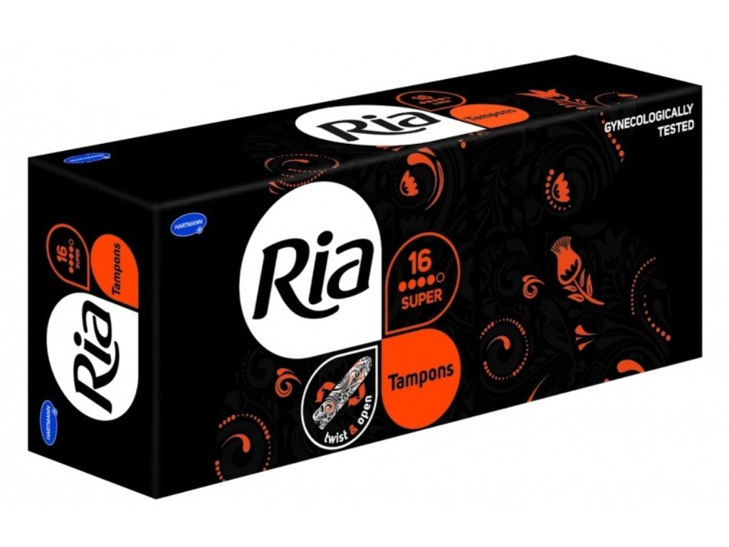 Ria Super Tampons bieten zuverlässigen Schutz und maximalen Tragekomfort bei sehr starker Menstruation. 8 Rillen, die samtweiche Oberfläche und die abgerundete Form des Tampons sorgen für ein äußerst angenehmes Einführen. Einfaches und schnelles Öffnen durch TWIST & OPEN. Gynäkologisch getestet.