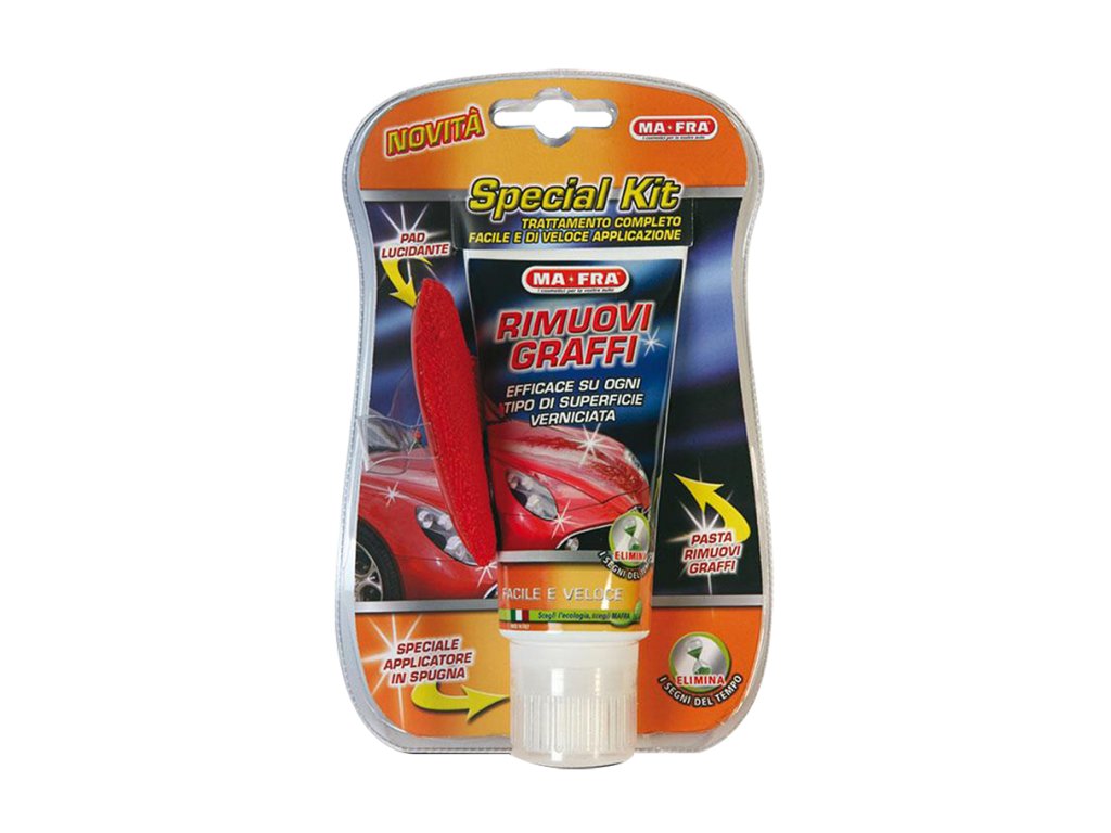 MA-FRA – Rimuovi Graffi 100 ml – Kratzerentferner – Polierset zur Kratzerentfernung mit speziellem Applikator und Schwamm. Frischt behandelte Oberflächen auf.