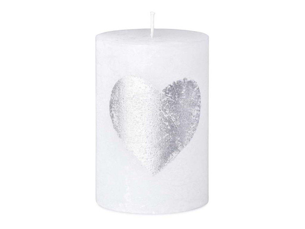 Rustikale, zylinderförmige, weiße Kerze + herzförmiger Lack, 70 x 100 mm