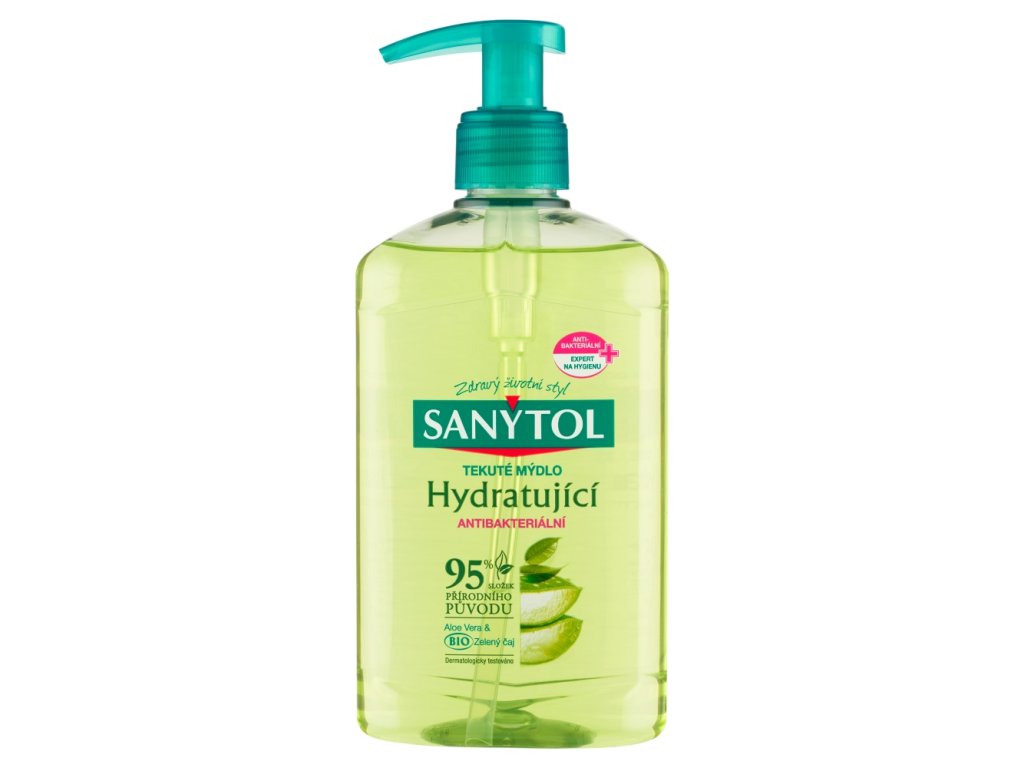 Die meisten Infektionskrankheiten werden über die Hände übertragen. Regelmäßiges Händewaschen ist daher der einfachste Weg, Infektionen vorzubeugen. Die dermatologisch getestete desinfizierende Feuchtigkeitsseife SANYTOL hat eine hypoallergene Zusammensetzung, die mit natürlichen Extrakten aus grünem Tee und Aloe Vera angereichert ist.