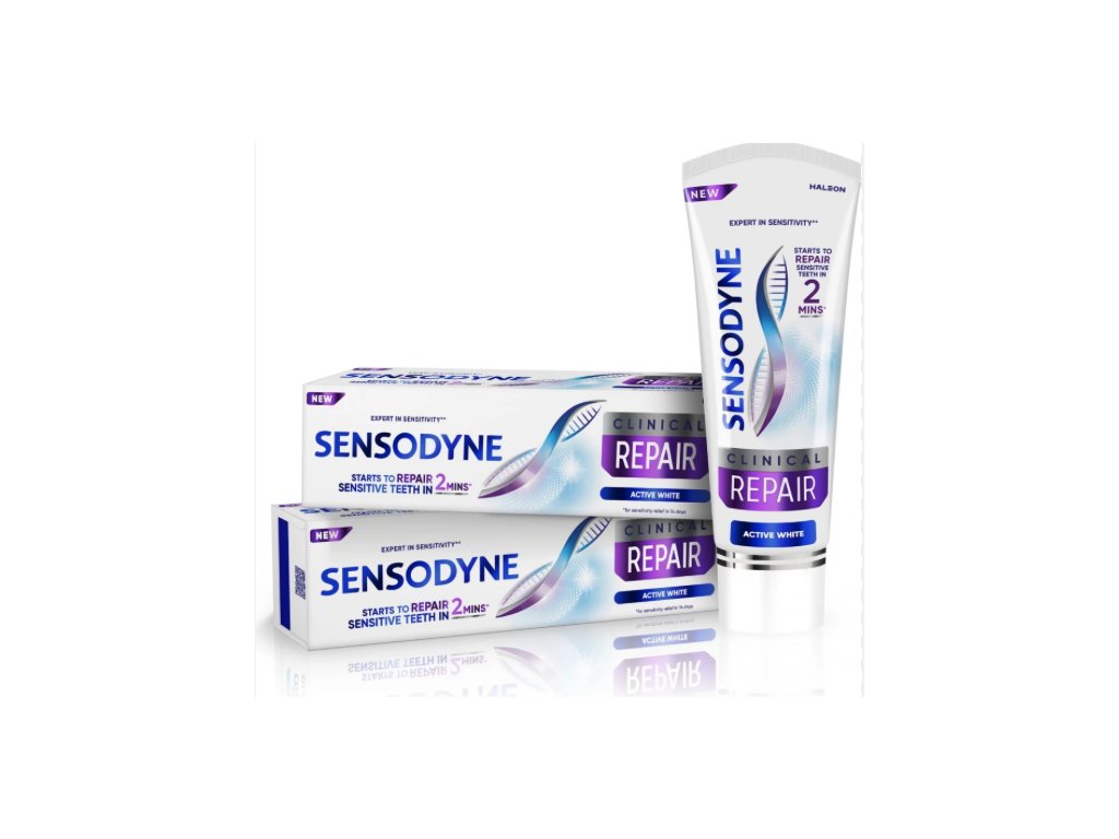 Diese Sensodyne Clinical Repair Active White Doppelpackung ist für die tägliche Pflege von Zähnen mit empfindlichem Zahnschmelz konzipiert, die Folgendes wünschen: