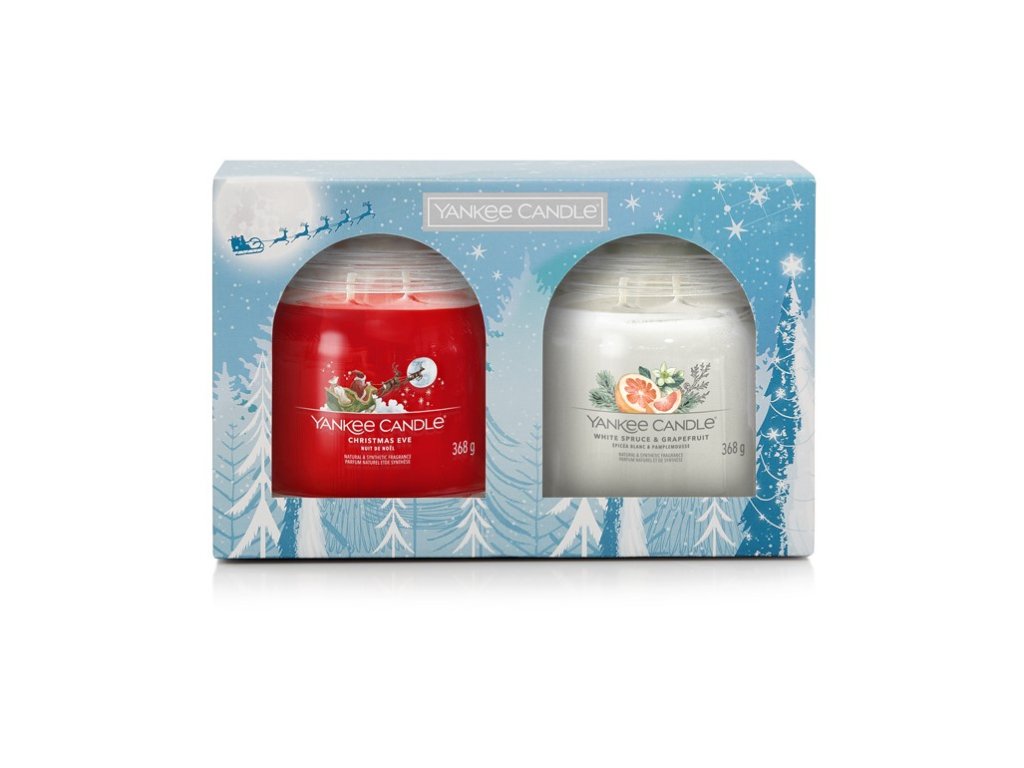 Ein Geschenkset mit zwei mittelgroßen Signature-Kerzen schenkt Ihnen viele Stunden wunderbaren Duft. Die Kerzen sind in folgenden Duftrichtungen erhältlich: dem beliebten Weihnachtsklassiker „Christmas Eve“ und der brandneuen Duftkomposition „White Spruce & Grapefruit“. Erstere ist ein traditioneller Weihnachtsduft mit einer charmanten Komposition aus erfrischenden Zitrusfrüchten, Mandeln und Zimt, umhüllt von cremiger Praline und Vanille. Letztere ist erfrischend und fröhlich – saftige Grapefruit und lebendige Fichte vereinen sich mit cremiger Vanille und warmem Moschus. Die Kerzen haben zwei Dochte und duften bis zu 50 Stunden lang intensiv.