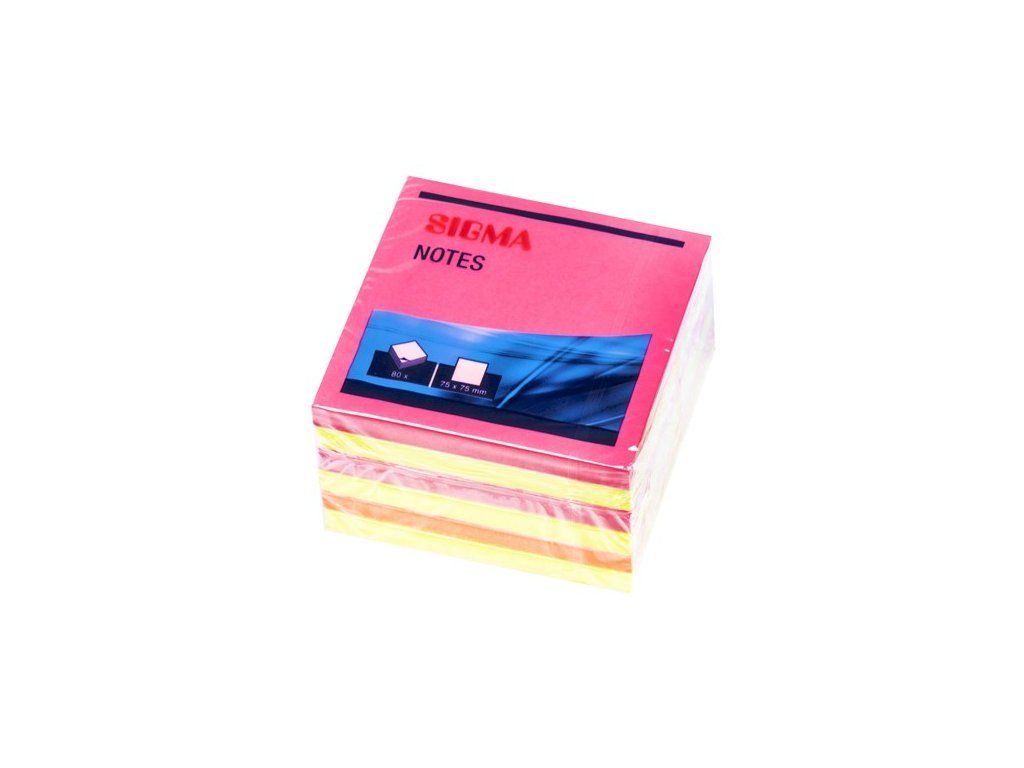 SIGMA Selbstklebender Notizblock 75 mm 80 Blatt Neon 6 Stück
