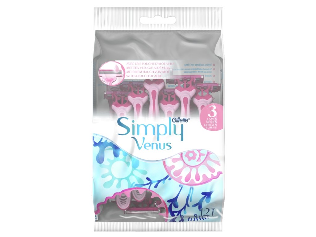 Die Simply Venus 3 Einwegrasierer für Damen verfügen über drei Klingen für eine gründlichere Rasur und weniger Schnittverletzungen. Der MoistureRich-Feuchtigkeitsstreifen erleichtert das Gleiten über die Haut, und schützende Mikroklappen reduzieren Schnittverletzungen.