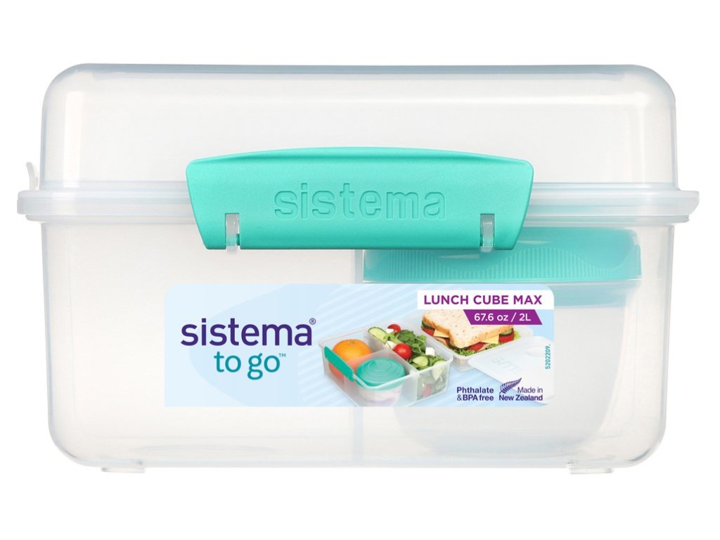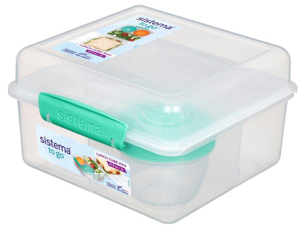Sistema Divided Snack Box To Go Lunch Cube Max mit Joghurtbehälter mit Doppeldeckel 2l, verschiedene Farben