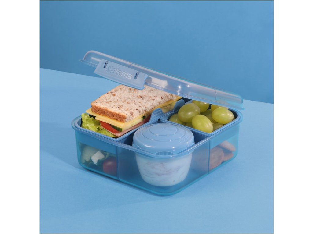 Sistema Divided Snackbox Ocean Bound Bento Cube mit Joghurtbehälter und 2 Schalen à 1,25 l, blau