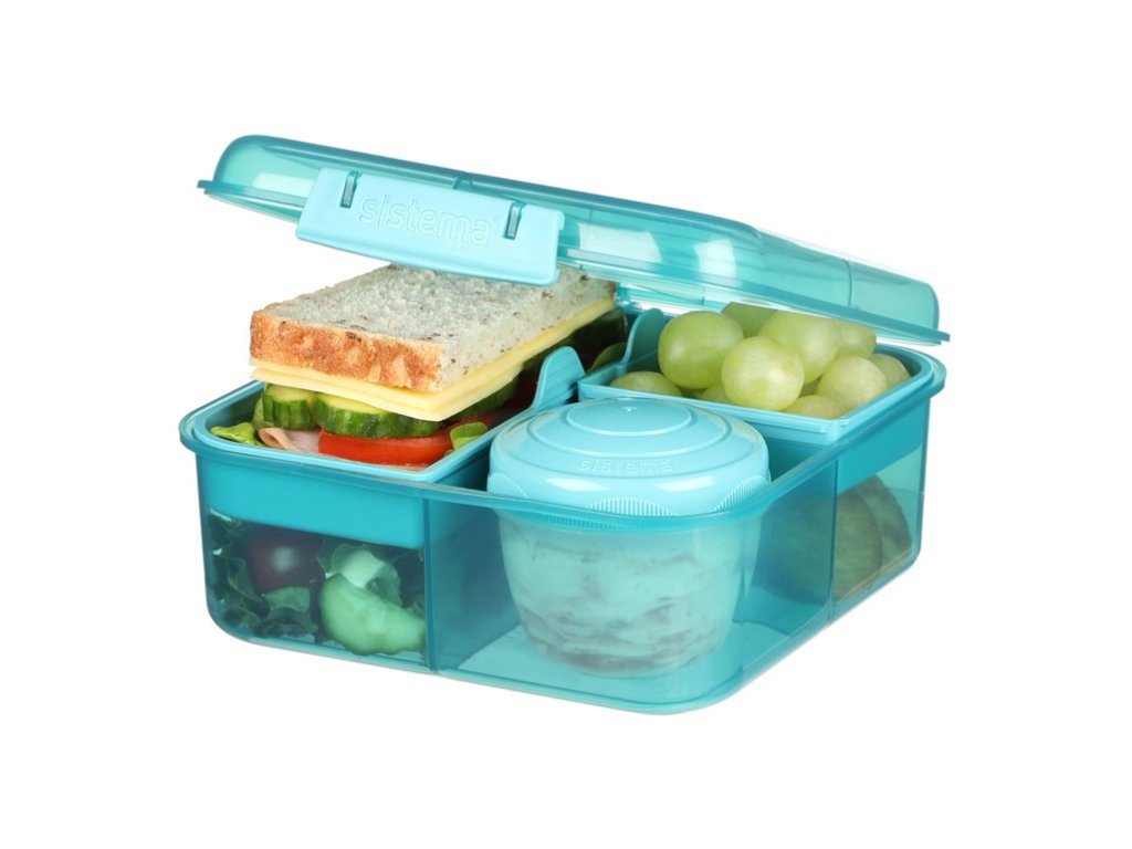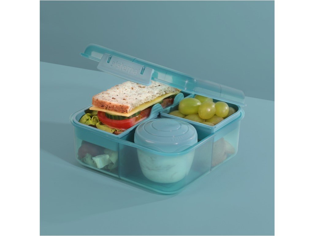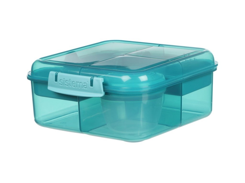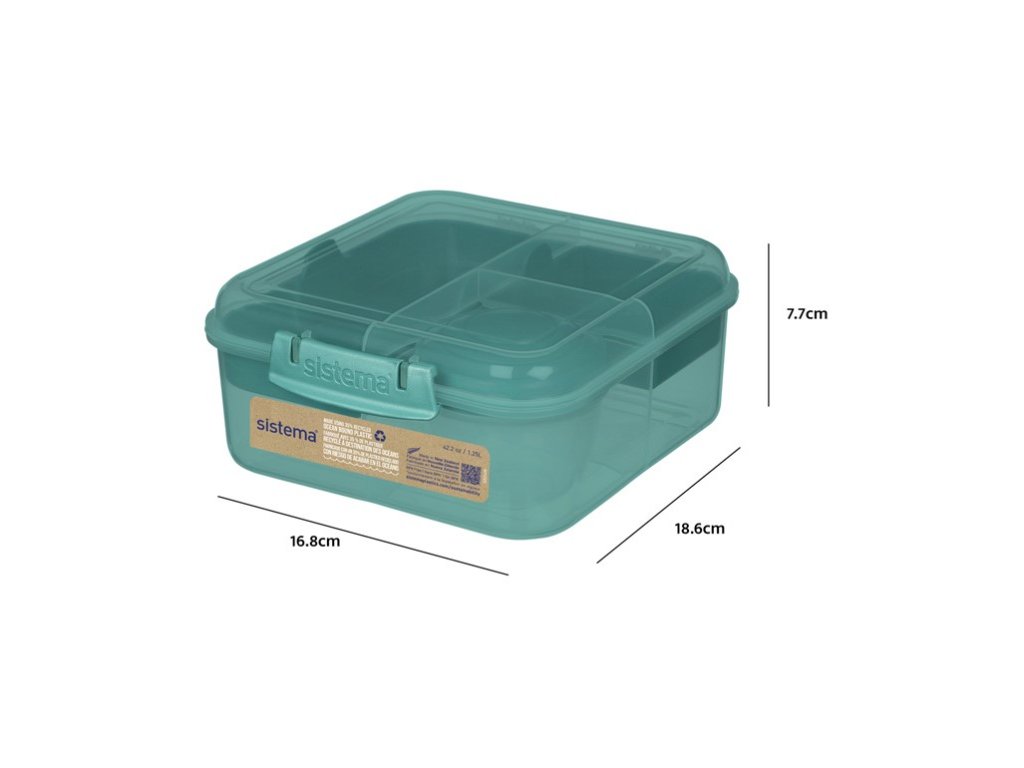 Sistema Divided Snackbox Ocean Bound Bento Cube mit Joghurtbehälter und 2 Tabletts à 1,25 l, Farbmix