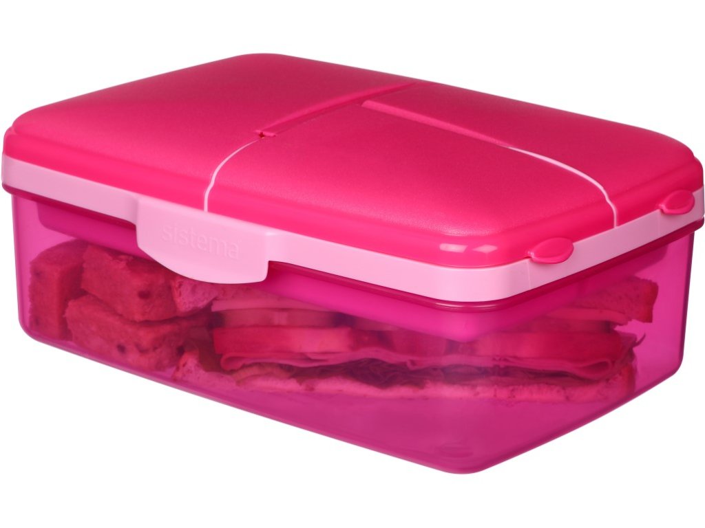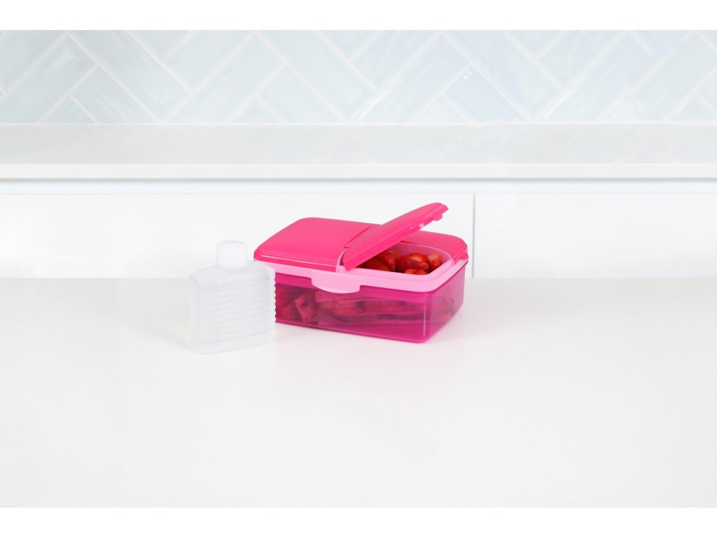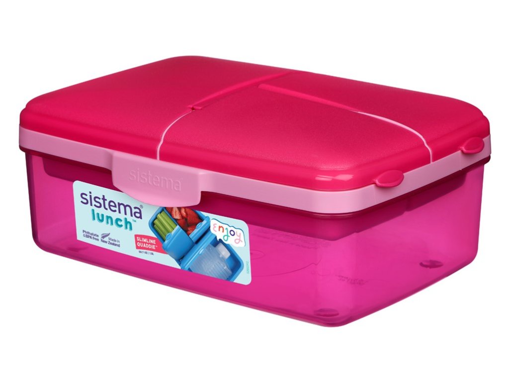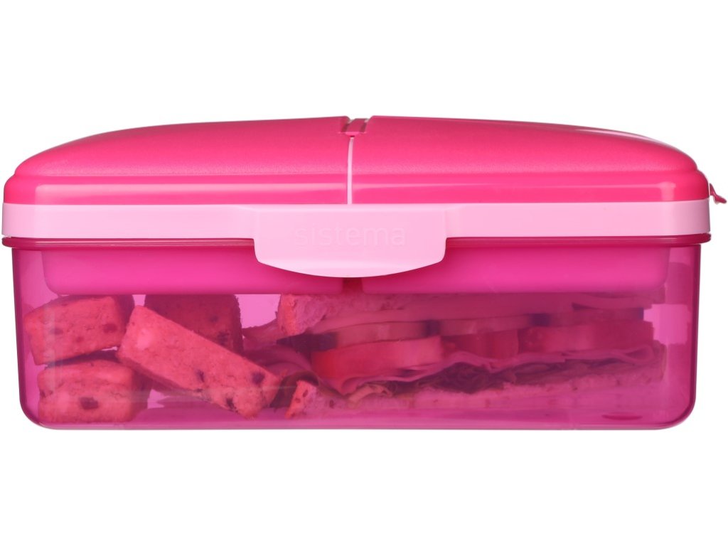 Sistema Lunch Quaddie 1,5 l Snackbox mit drei Fächern im Deckel und einer Trinkflasche, rosa