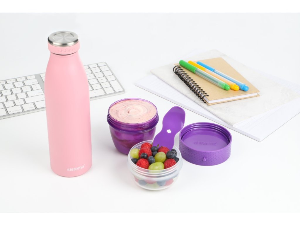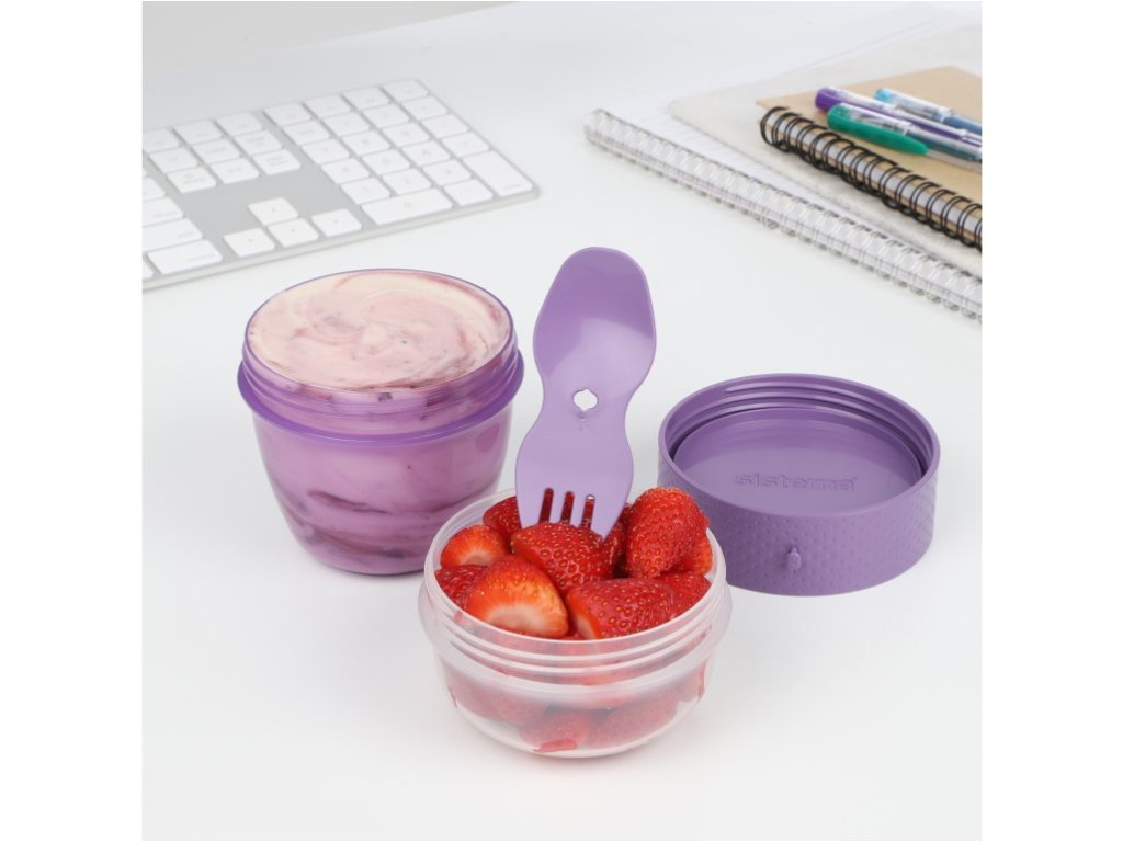 Die Sistema® 515 ml TO GO™ Snackkapsel mit 2 Fächern und Gabel/Löffel ist der clevere und praktische Helfer für alle, die sich auch unterwegs gesund und lecker ernähren möchten. Dank der praktischen Form lassen sich verschiedene Lebensmittel getrennt aufbewahren und erst kurz vor dem Verzehr vermischen. Im unteren Teil können Sie beispielsweise Joghurt, im oberen Teil beliebige Zutaten (Müsli, Obst, Trockenfrüchte oder Cerealien) aufbewahren. Mit der beiliegenden Gabel/dem Löffel genießen Sie Ihre Lieblingssnacks überall. Die stapelbare Form sorgt für optimale Platzausnutzung in Vorratsschrank, Kühlschrank und Gefrierschrank. Vorteile: • Universelles Gabel-Löffel-Set inklusive • Zwei separate Fächer • Schraubverschluss • Robuster KunststoffZusätzliche Parameter