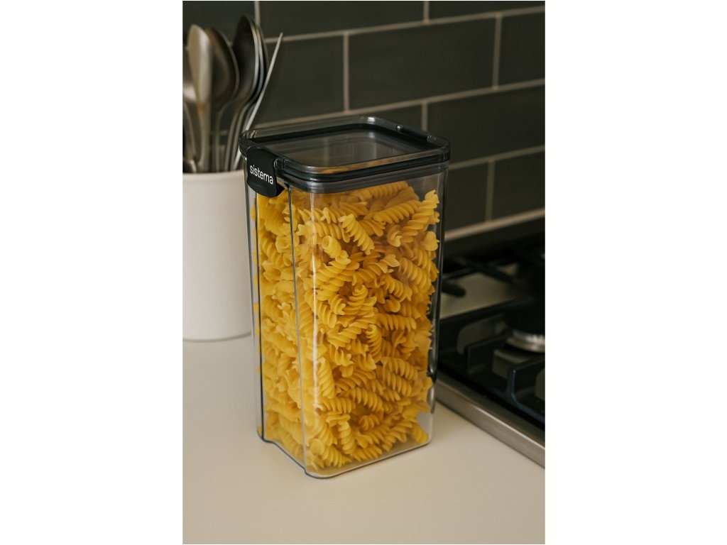 Das hochtransparente Plastik mit glasähnlicher Transparenz ermöglicht eine optimale Sicht auf den Inhalt. Robust und bruchfest. Platzsparend stapelbar für eine effiziente Küchenorganisation. Die einfach zu bedienenden Sistema-Clips und der luftdichte Verschluss halten den Inhalt frisch. Teil der quadratischen Serie (114 x 102 mm).Zusätzliche Parameter